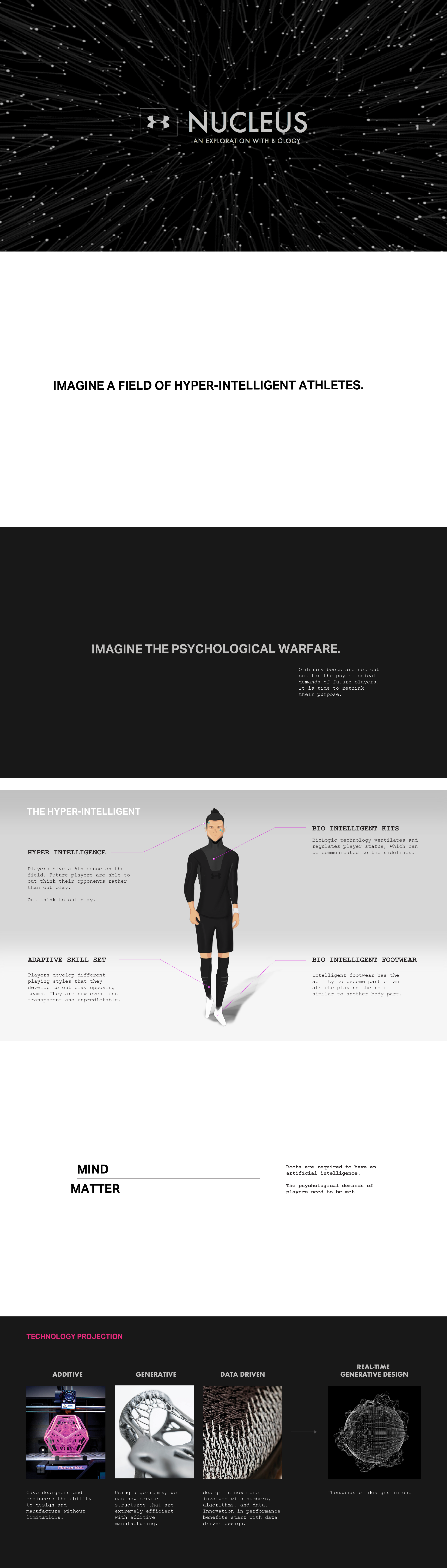 Project Nucleus is a blue-sky idea that explores the integration of microbiology into cleated footwear, investigating possible 4D solutions.